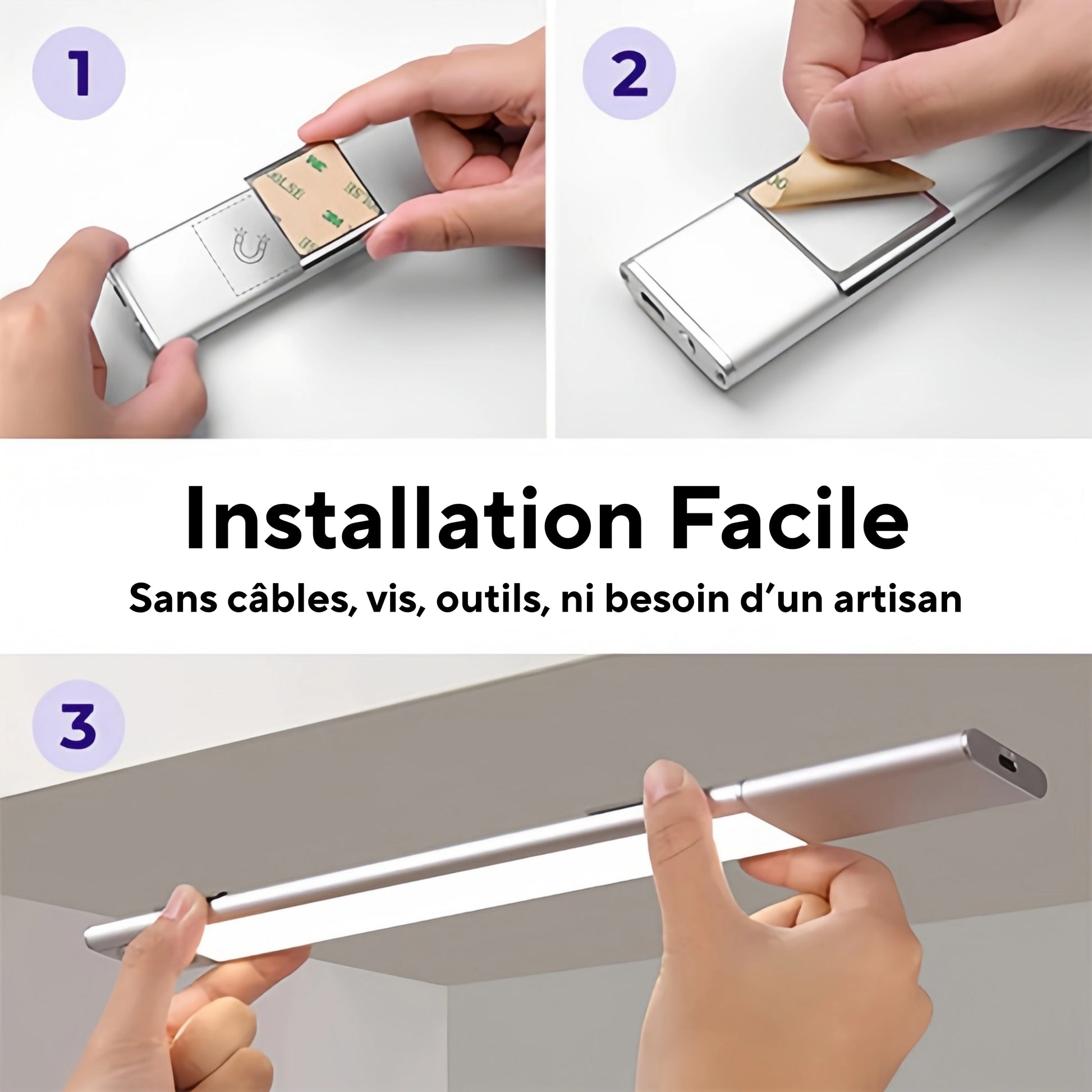 Très simple : la lampe se fixe grâce aux plaques magnétiques fournies - pas besoin de percer, ni d’outils, ni de faire appel à un professionnel.