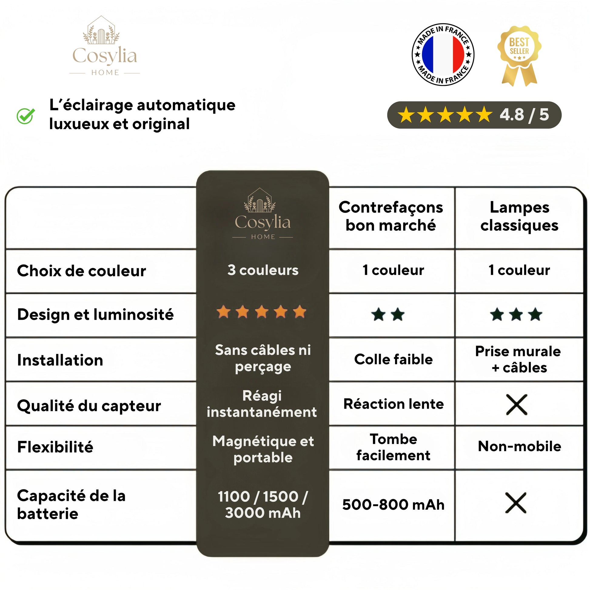 Alors j’ai déniché la Lumora 3.0 : une lampe à capteur sans fil qui s’allume automatiquement quand tu en as besoin - élégante, simple et installée en quelques secondes.