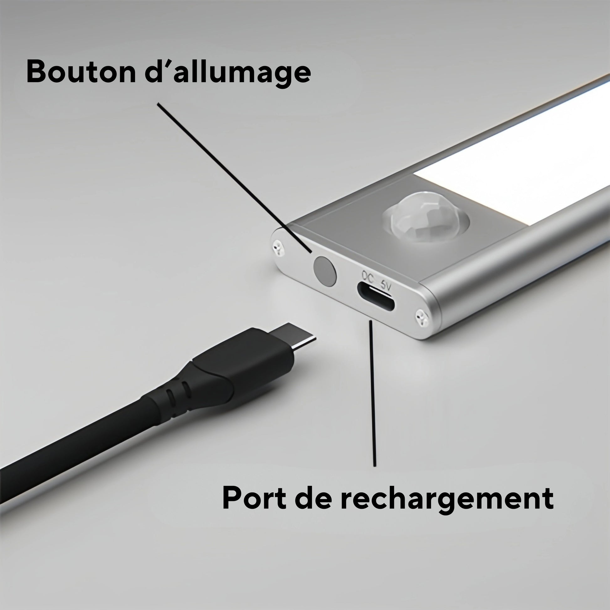 Tu peux recharger la lampe très facilement avec le câble USB-C inclus gratuitement dans le kit.